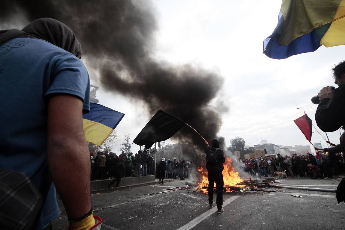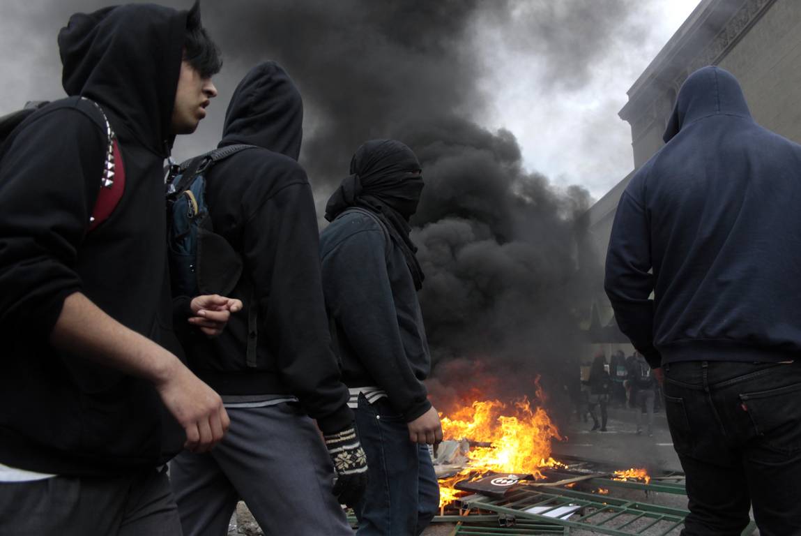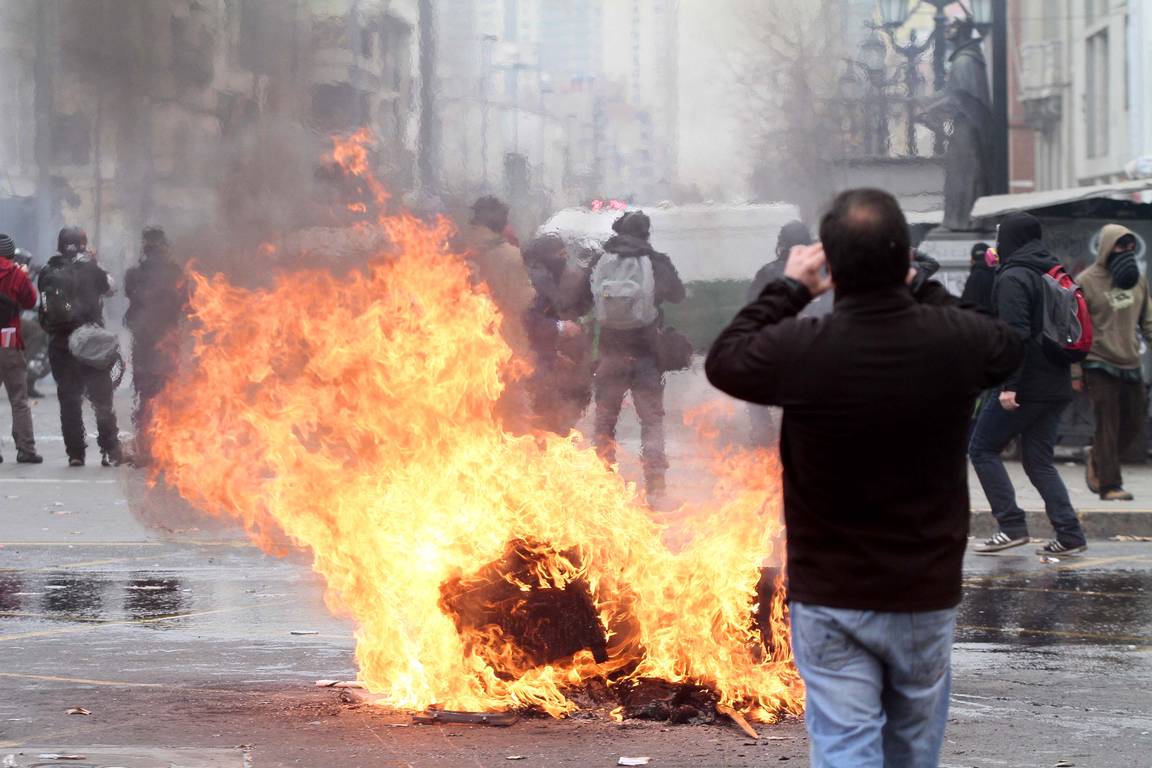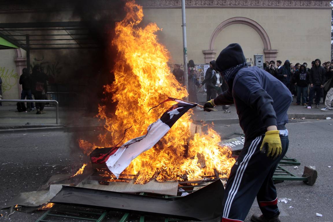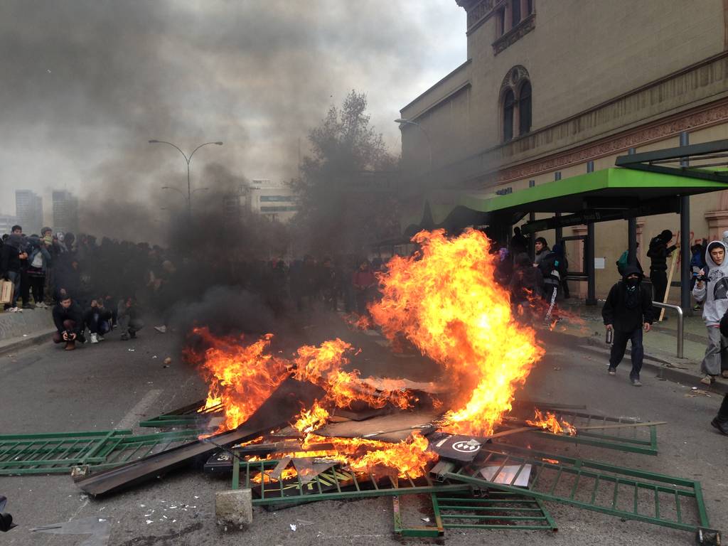 Sin embargo, los principales desmanes ocurrieron una vez finalizada la marcha, cuando un grupo de personas comenzó a levantar y encender barricadas con mobiliario público, basureros y luminarias.