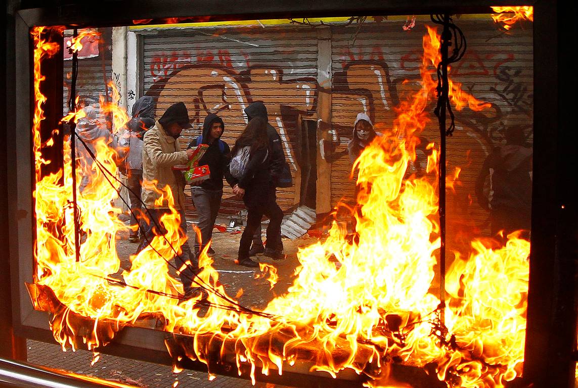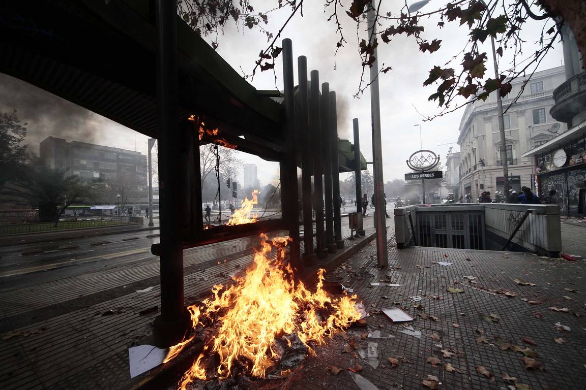 Un paradero del Transantiago, ubicado cerca de la Embajada de Brasil, resultó destruido prácticamente en su totalidad y un local comercial sufrió un intento de saqueo.