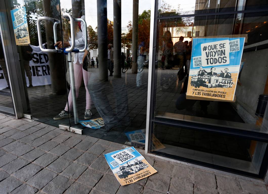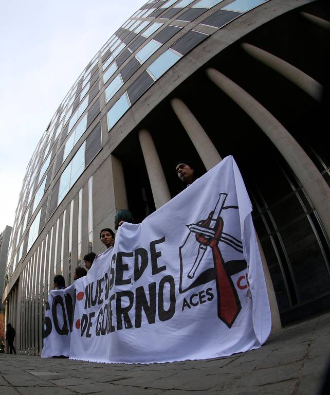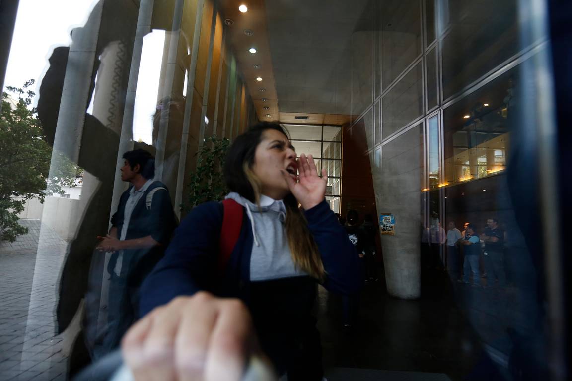 Un grupo de estudiantes pertenecientes a la ACES se tomaron la mañana de este miércoles las oficinas de Soquimich en Las Condes.