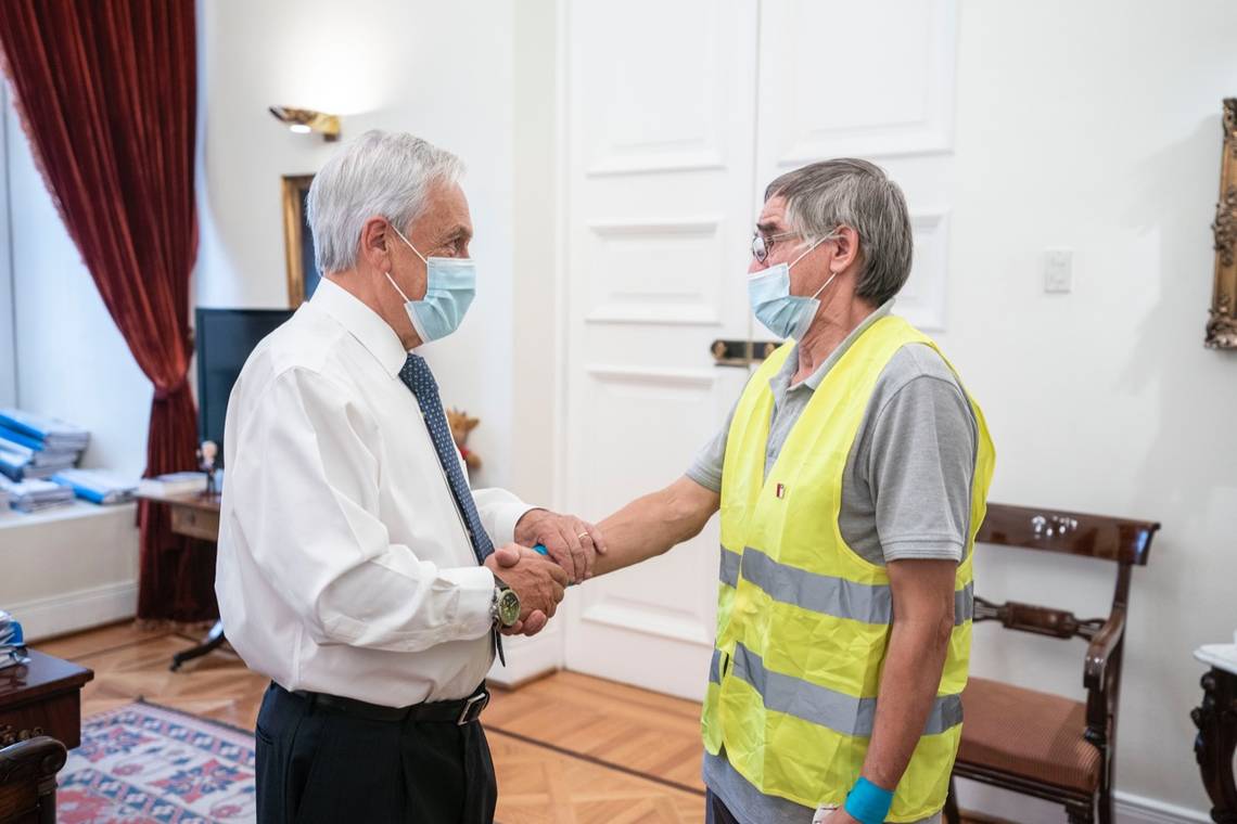 Durante la tarde de este jueves, una persona al interior del Palacio de La Moneda lanzó agua al Presidente Sebastián Piñera tras finalizar un discurso a dos años del primer caso de COVID-19 en nuestro país.