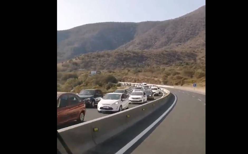 Según aseveró Rutas del Pacífico en su cuenta de Twitter, el tránsito lento es debido a "presencia de manifestantes en la ruta" desde el 24,4 km hasta el 19, en dirección a la capital.