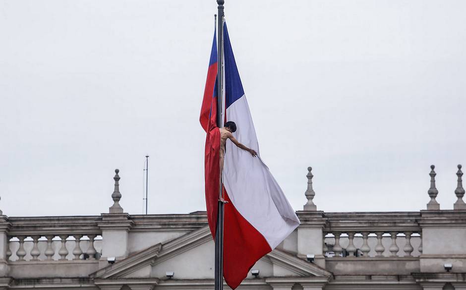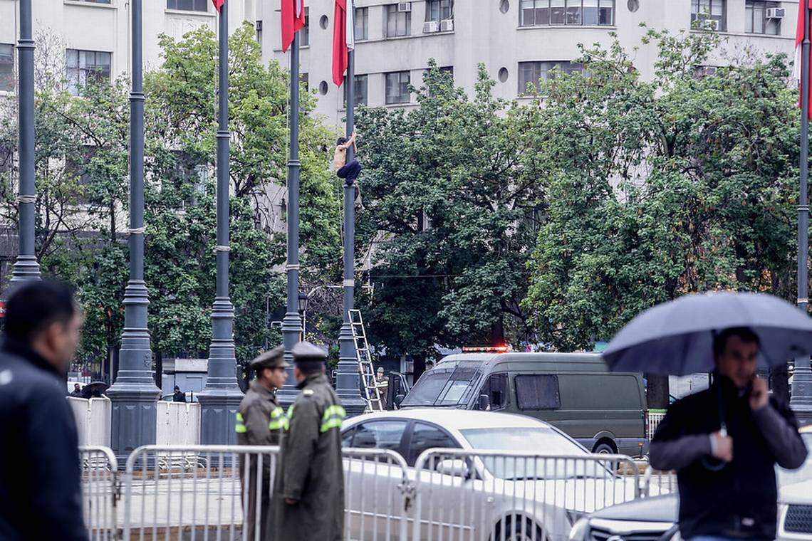 Cerca de las 11.00 horas de este jueves un hombre se desnudó y subió al mástil de la bandera chilena ubicada frente al Palacio de La Moneda.