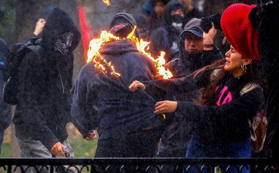 La ropa de los sujetos se incendió mientras se enfrentaba con Fuerzas Especiales en medio de los primeros incidentes registrados tras finalizar la movilización.