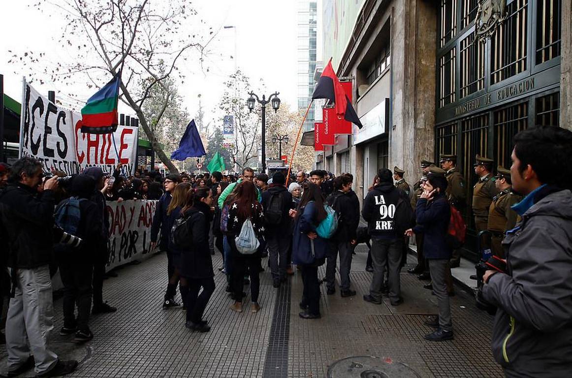 Luego se trasladaron hasta el frontis del Ministerio de Educación para expresar su rechazo a la Reforma Educacional y la represión durante las marchas.