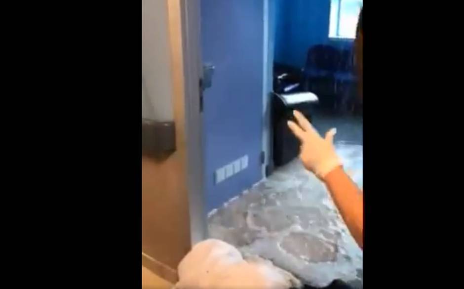 Un video difundido en redes sociales dio cuenta de cómo una gran cantidad de agua caída desde el cielo de la sala dejando inutilizable esa zona.
