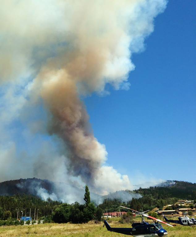 Onemi comunicó que existen 32 aeronaves trabajando en la situación, entre aviones y helicópteros, sumado a 21 brigadas pertenecientes a la Corporación Nacional Forestal.