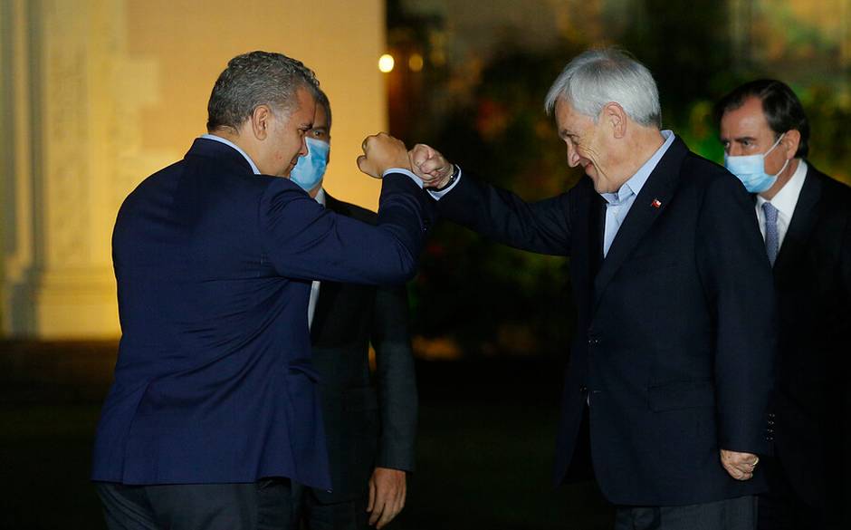 Duque, que relevará a Chile en la presidencia pro tempore en Prosur, destacó varios puntos en común de la agenda de Colombia con la de Chile, aseverando que "el reto que tenemos hoy es la reactivación segura y no podemos bajar la guardia", en relación a la situación de ambos países con la pandemia del coronavirus.