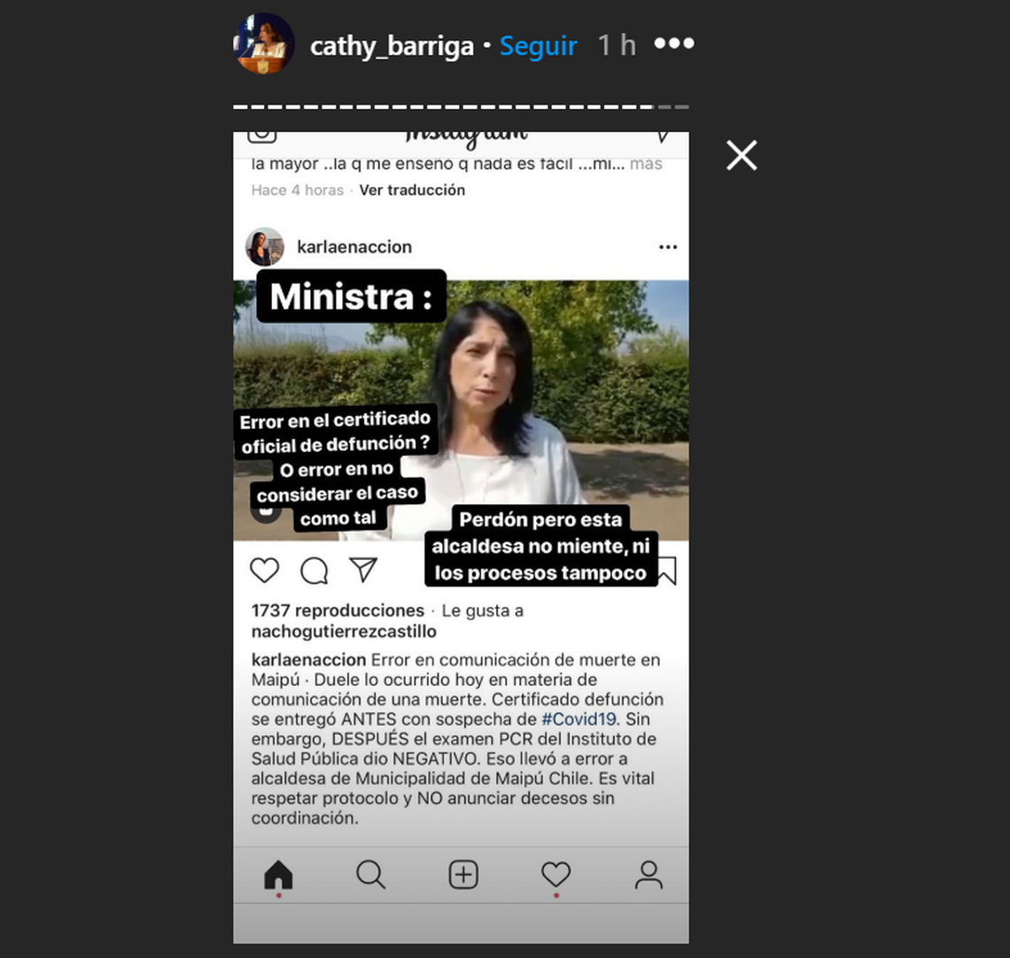 La alcaldesa de Maipú volvió a recurrir a Instagram para referirse a lo ocurrido, comentando las palabras de Rubilar.