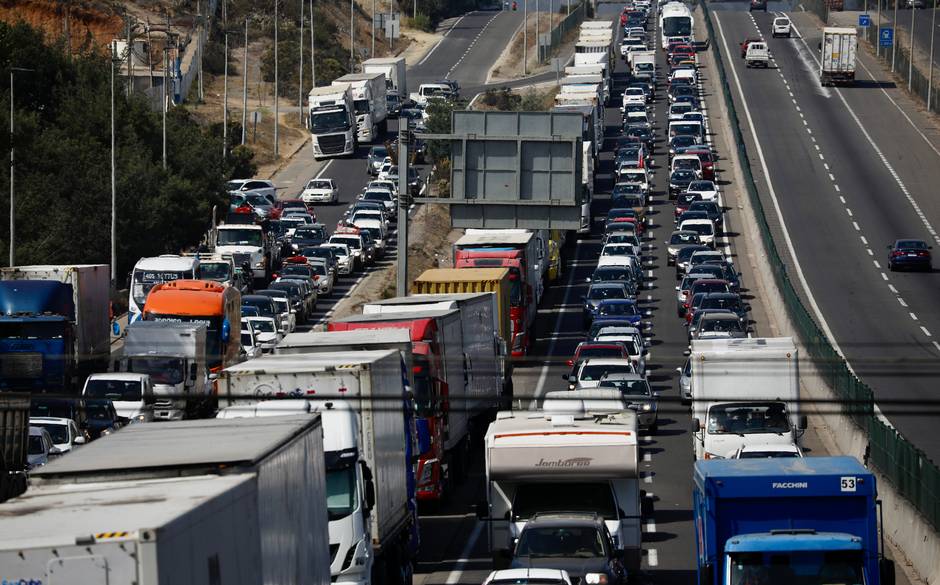 En la zona centro del país, se informó que, por manifestaciones de camioneros, se mantienen las congestiones y en la Ruta 5 Sur, kilómetro 138 (San Fernando), se encuentra el tránsito cortado hacia el norte, mientras que en dirección al sur hay una pista habilitada.