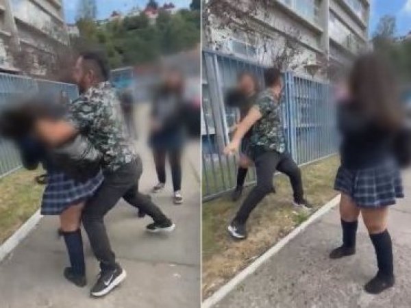 Con un adulto golpeando en la cara a una estudiante terminó una brutal pelea entre jóvenes a las afueras de un Liceo de Talcahuano. Es el tío de una de las involucradas. La defensoría de la niñez abrió una investigación.