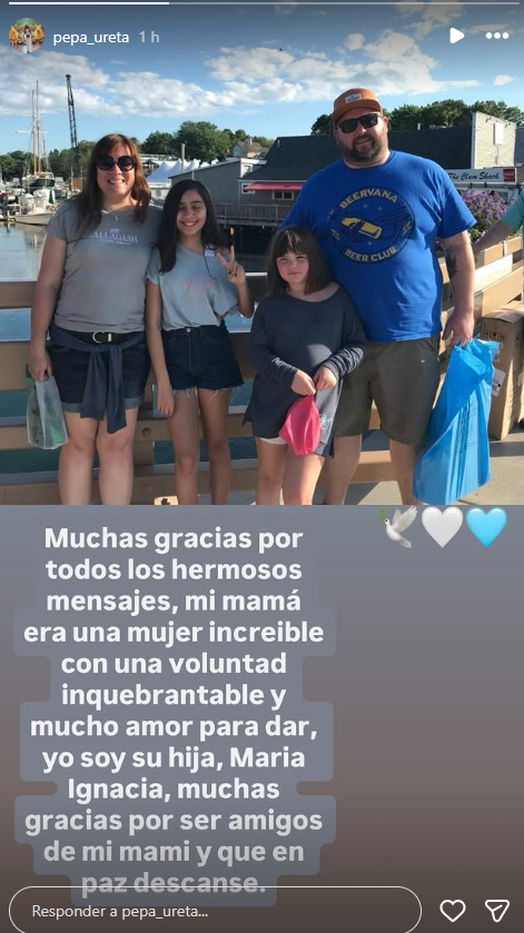 "Muchas gracias por todos los hermosos mensajes. Mi mamá era una mujer increíble, con una voluntad inquebrantable y mucho amor para dar. Yo soy su hija María Ignacia. Muchas gracias por ser amigos de mi mami y que en paz descanse".