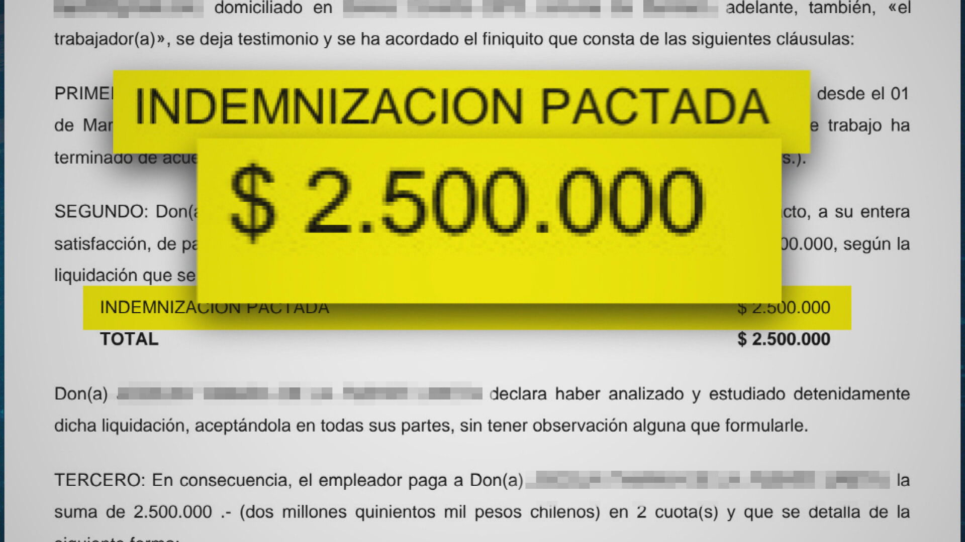 En un comienzo, sus jefas le prestaron apoyo emocional, pero más tarde recibió un contrato de mutuo acuerdo. Le ofrecieron una indemnización de 2 millones y medio de pesos y se indica expresamente que debe renunciar a cualquier derecho, acción o reclamo que involucre directa o indirectamente a su empleador. Jocelin no aceptó el acuerdo y la despidieron.