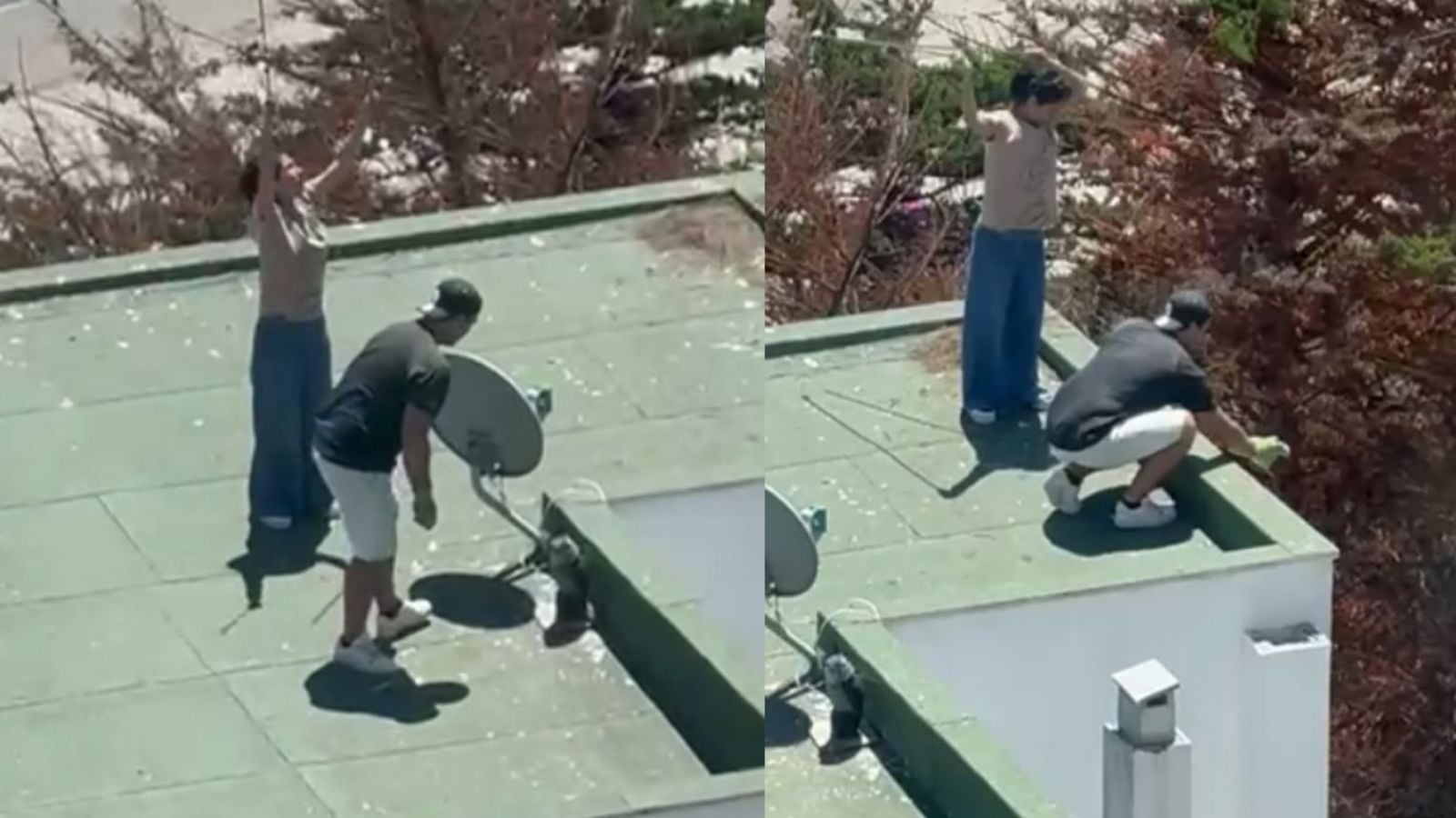 El registro mostró a los sujetos tomando a los polluelos de gaviota y lanzándolos al vacío desde la azotea de un edificio. Mientras el hombre lo hacía, la mujer ahuyentaba a la madre de las crías intentaba ayudarlas.