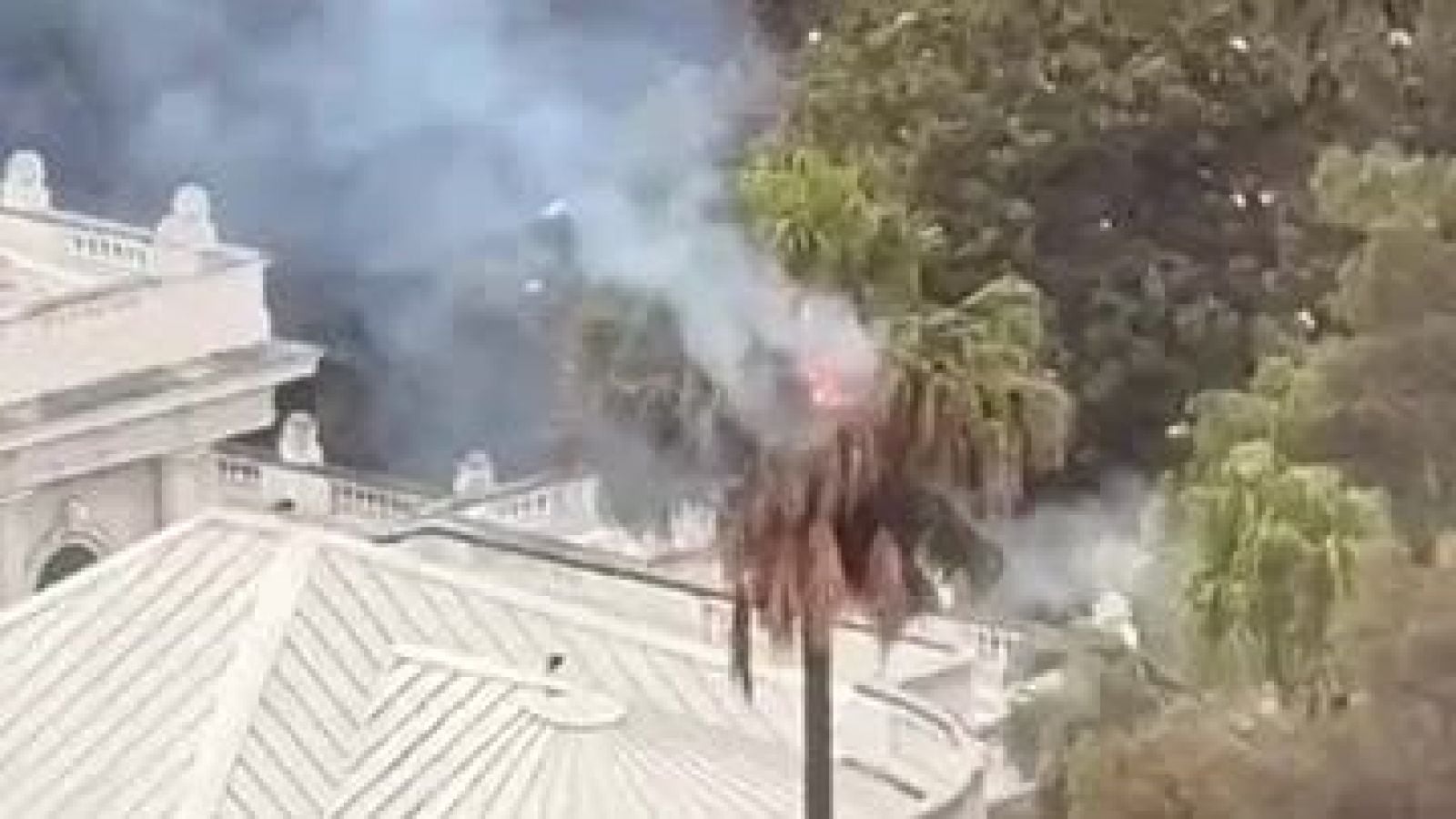 Una situación de emergencia se registró la tarde de este domingo en el Palacio Rioja, en Viña del Mar, luego de que una palmera resultara afectada por un incendio en su parte superior, el fuego se habría originado tras el impacto de un rayo, en medio de la actividad eléctrica que afecta a la zona central del país.