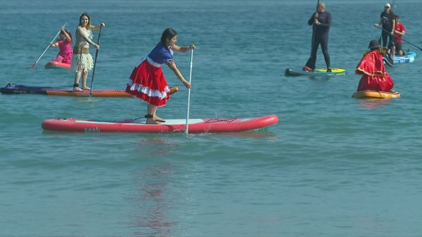 Domingo 14 de septiembre de 2025 Vestidos de huasa incluido: deportes acuáticos a la chilena en Coquimbo Familias y deportistas de Stand Up Paddle se han reunido desde la Bahía de la Herradura en Coquimbo, para llevar a cabo la Pampilla Playera en la víspera de Fiestas Patrias. Los deportes acuático y toda su adrenalina, pero, además, vestidos con trajes típicos para desfilar en el agua y disfrutar todas las actividades a la chilena.