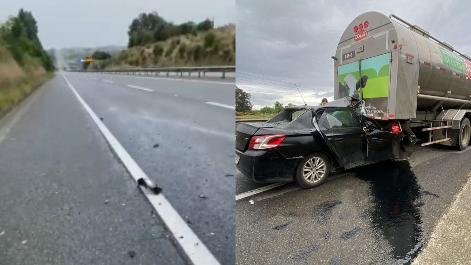 Un padre y sus dos hijos fueron identificados como las víctimas fatales del accidente ocurrido en la Ruta 5, a la altura de Río Bueno, donde un vehículo menor chocó contra un camión que prestaba servicios para la empresa Colún a en el kilómetro 894.