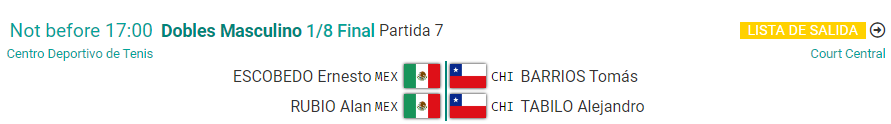 - Miércoles 25 de octubre, no antes de las 17:00 horas: Alejandro Tabilo y Tomás Barrios vs. Ernesto Escobero y Alan Rubio.