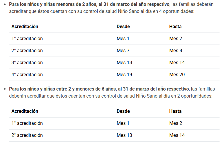 - Que la familia tenga integrantes menores de 6 años al 31 de marzo del año respectivo.