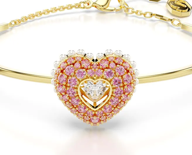 - Joyas Swarovski para regalar - Brazalete Idyllia, Corazón, Rosa, Acabado en tono oro