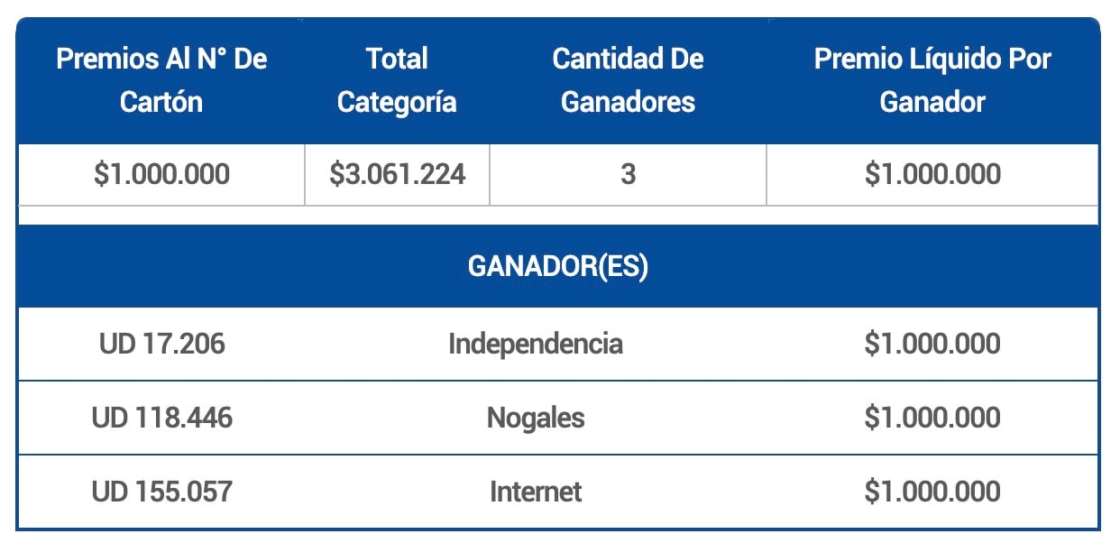 PREMIOS AL NÚMERO DE CARTÓN