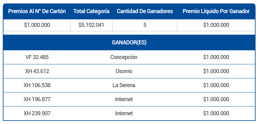 PREMIOS AL NÚMERO DE CARTÓN