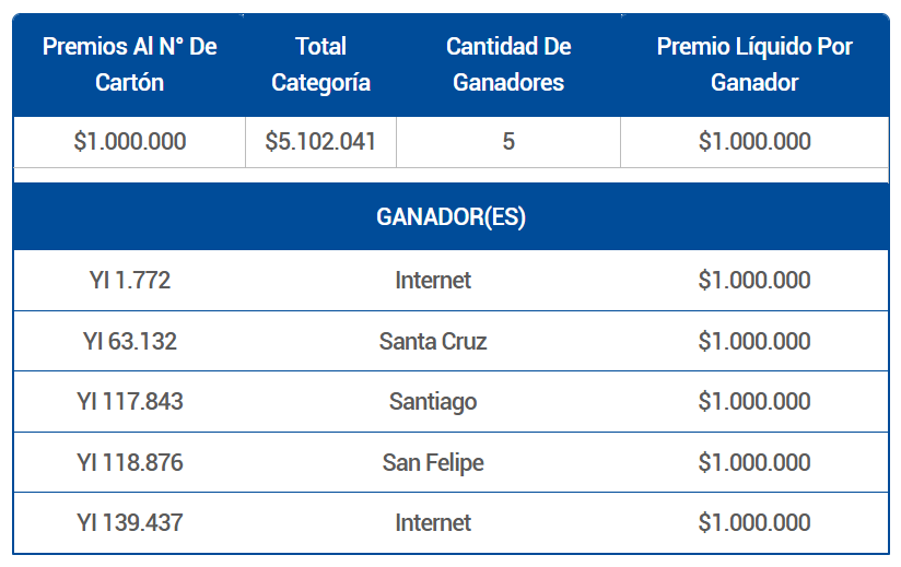 PREMIOS AL NÚMERO DE CARTÓN