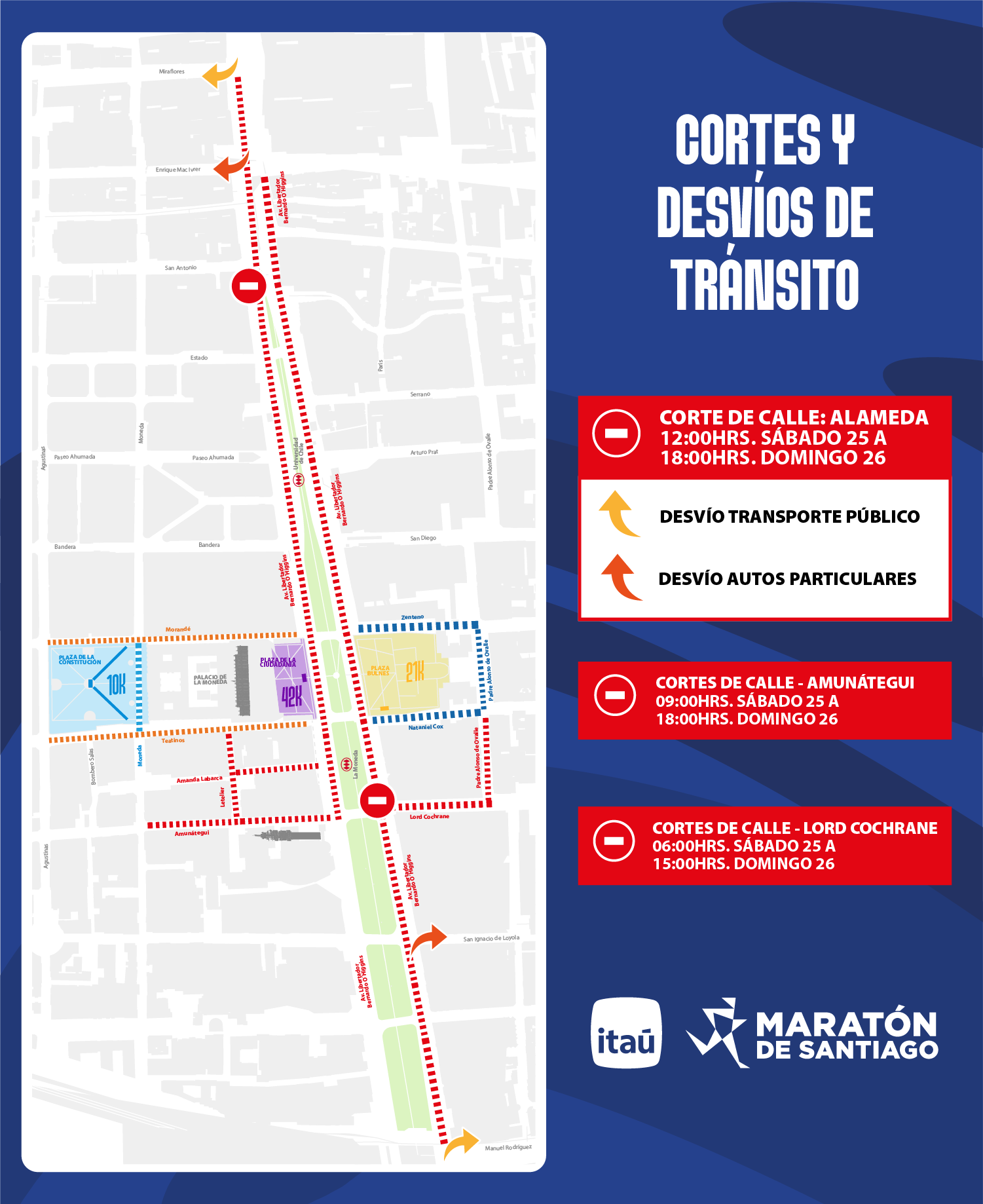 Desvíos de tránsito Maratón de Santiago 2026