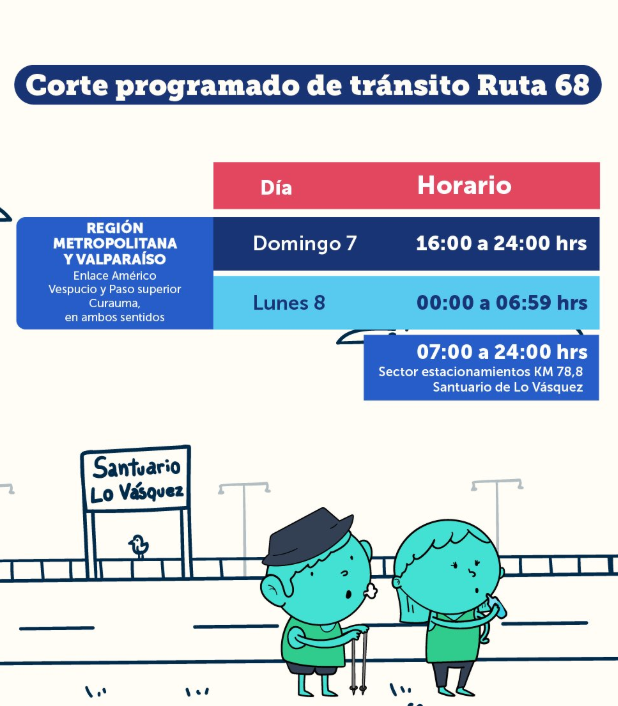 Una de las medidas centrales del plan de contingencia es el corte total de la Ruta 68, necesario para la seguridad del Peregrinaje a Lo Vásquez, que convoca a más de 1 millón de personas.