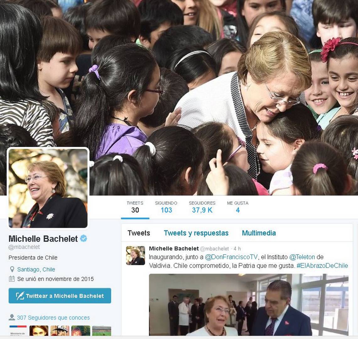 Cabe destacar que la jefa de Estado estrenó hace pocas semanas su perfil de Twitter bajo el nombre de usuario @mbachelet.