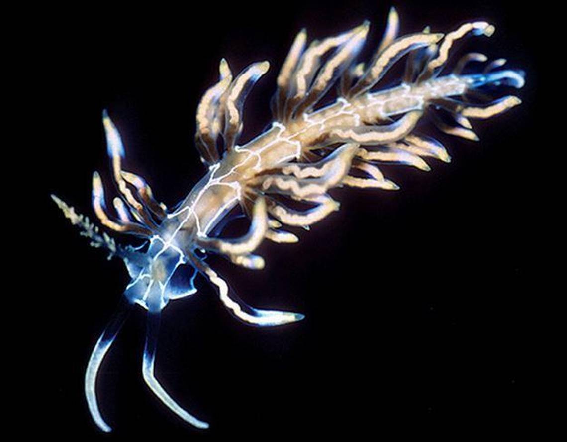 Esta babosa de mar impresiona por su forma y colorido y es considerada un "eslabón perdido" entre las babosas de mar que se alimentan de organismos marinos que se encuentran entre las medusas y las que lo hacen de corales. Viven en el archipiélago japonés.