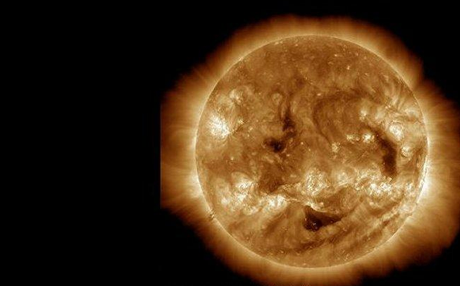 Los ojos y la sonrisa “dibujadas” en la superficie solar en realidad son manchas oscuras conocidas como “agujeros de la corona solar”, regiones de baja densidad en la capa atmosférica del Sol.