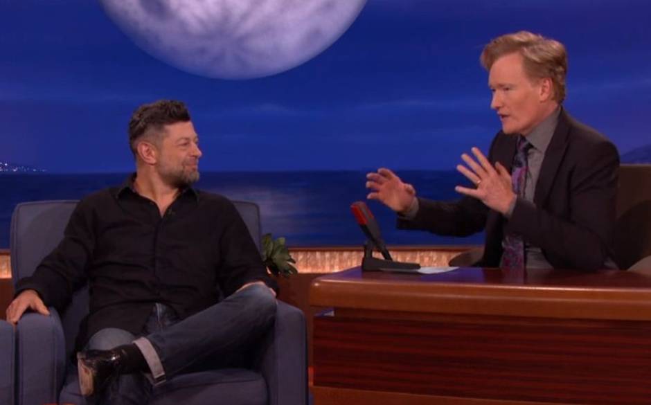 Andy Serkis, quien por estos días está dentro de lo más alto de los personajes del cine, pero que no aparece en pantalla, hizo reír a cientos de espectadores del show de Conan O'Brien.