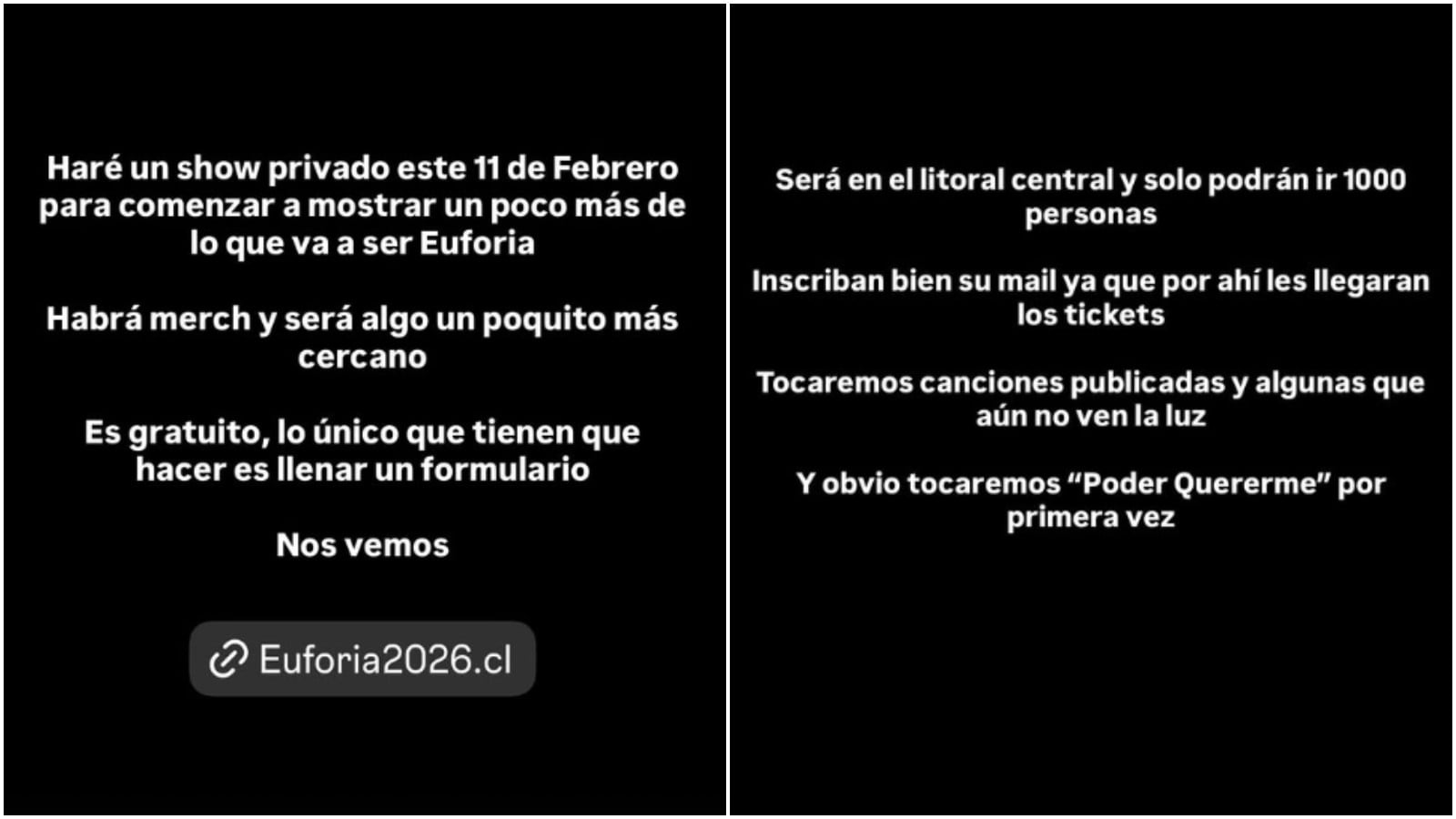 Luego, agregó que a este show solo podrán asistir mil personas. “Tocaremos canciones ya publicadas y algunas que aún no ven la luz. Y obvio, tocaremos “Poder Quererme" por primera vez".