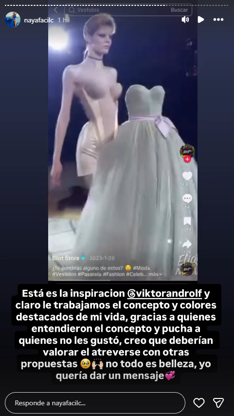 Tras su comentado paso por la alfombra roja y la explicación simbólica de su elección, Naya publicó el diseño que sirvió como inspiración de la casa de moda Viktor & Rolf.