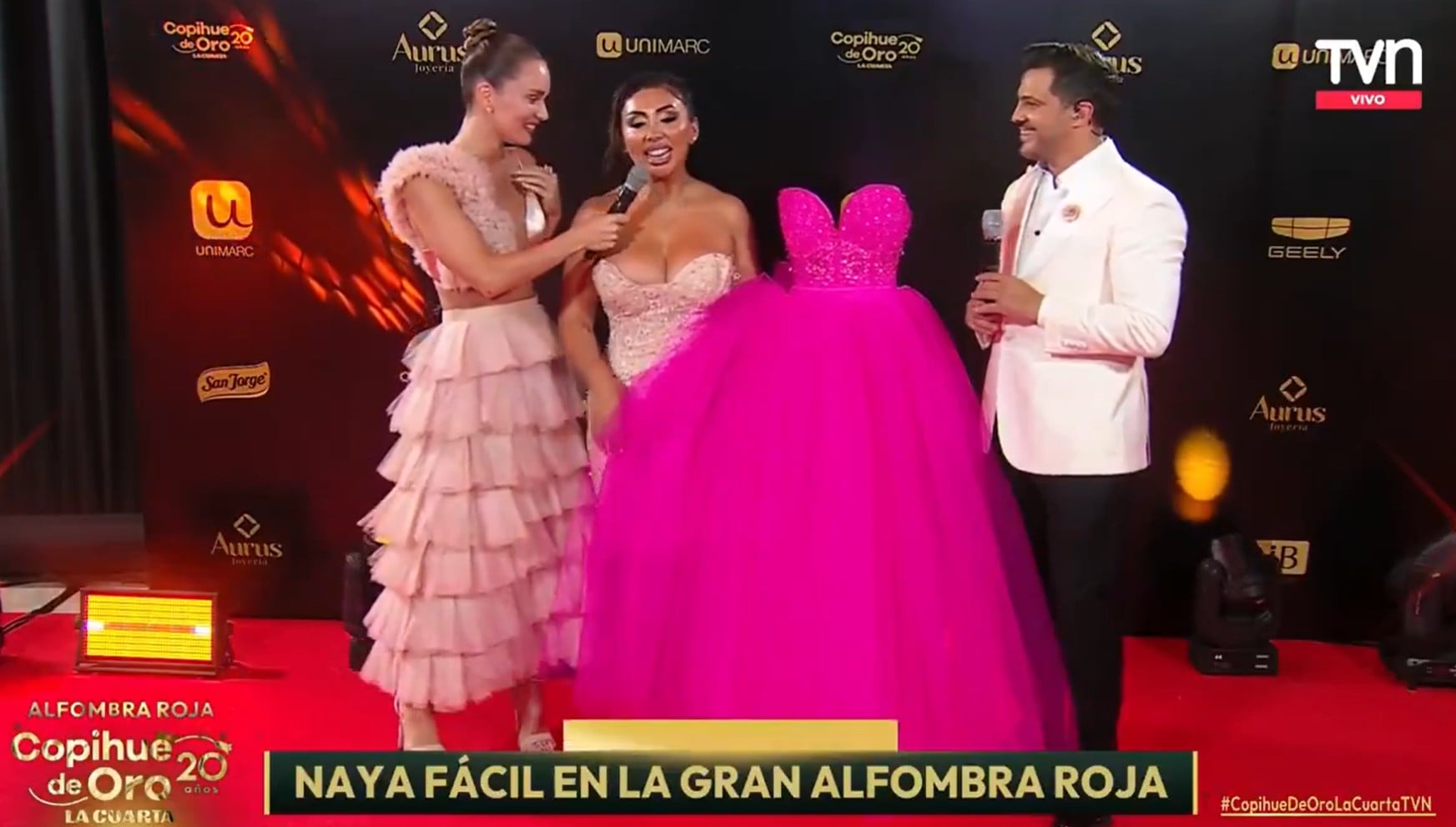 Naya Fácil se robó todas las miradas en la alfombra roja de los Copihue de Oro, premiación celebrada en TVN, al lucir un llamativo diseño que incluía un segundo vestido.