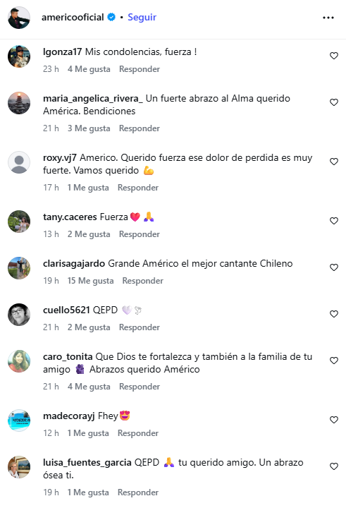 Frases como “Te mando un abrazo contenedor”, “qué triste noticia” y “fuerza en este difícil momento” se repitieron entre los comentarios, evidenciando el cariño del público hacia el artista.