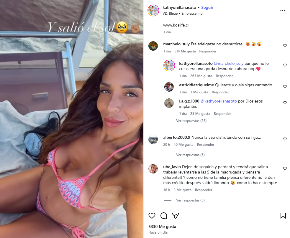Pese a que era un video habitual de su Instagram, este se llenó de duras críticas: "Era adelgazar, no desnutrirse...😮😮😮", comentó un usuario. Mientras que la misma cantante le respondió: "Aunque no lo creas, era una gorda desnutrida; ahora nop❤️".