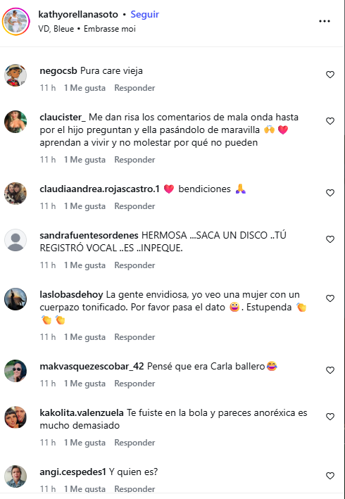 Otros comentarios la compararon con una modelo chilena y le enviaron apoyo en este proceso: "Pensé que era Carla Ballero", "Quiérete y ojalá sigas cantando...".