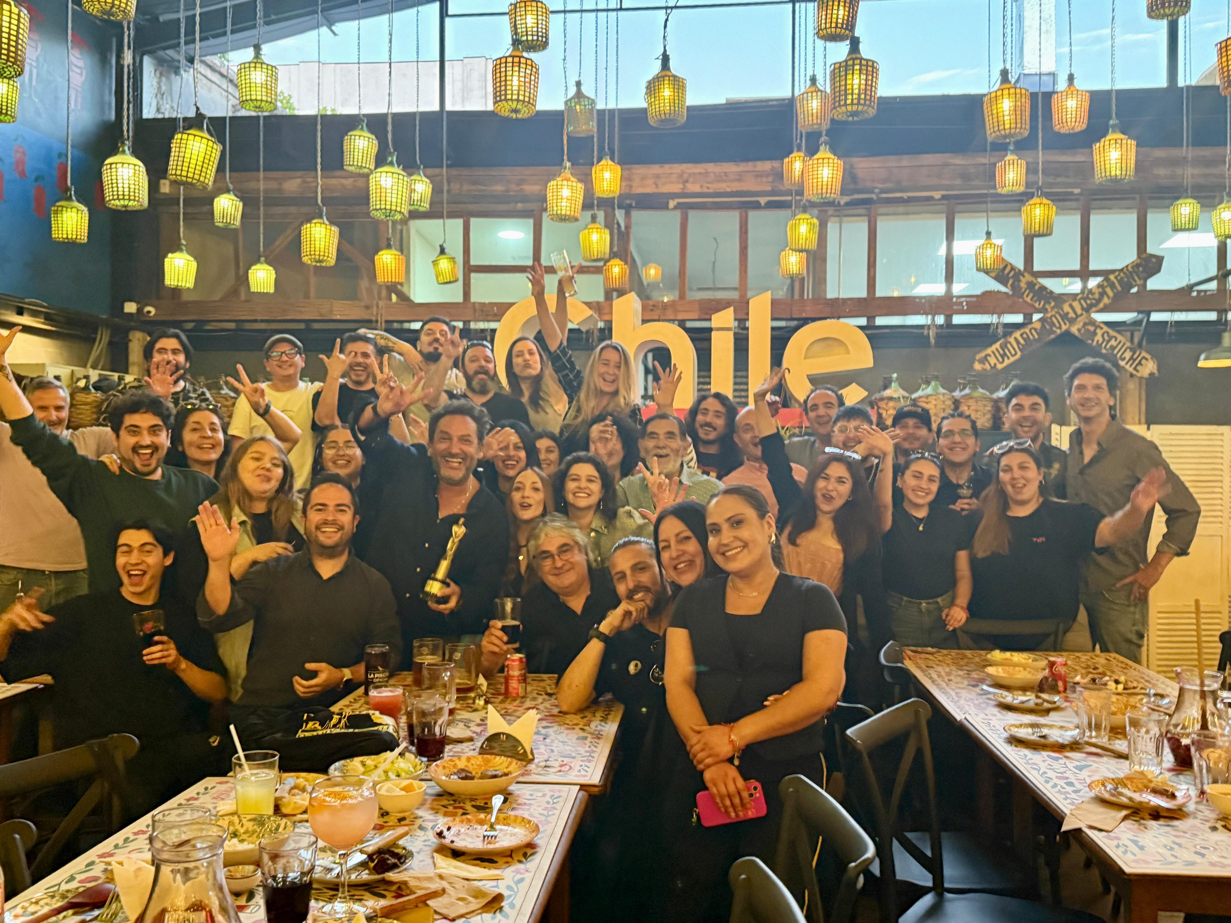 Tras su llegada desde el país norteamericano, el animador se reunió con las 50 personas que componen al equipo entre producción, contenido, técnicos y tramoyas para celebrar el merecido galardón latino.