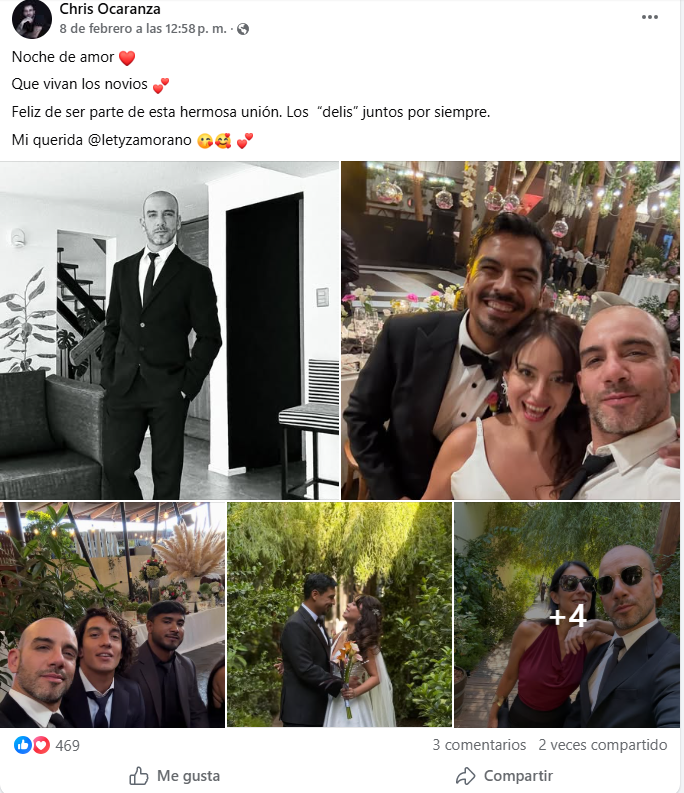 Mientras que el bailarín Chris Ocaranza dedicó palabras a la novia a través de su Facebook y publicó diversas fotos.