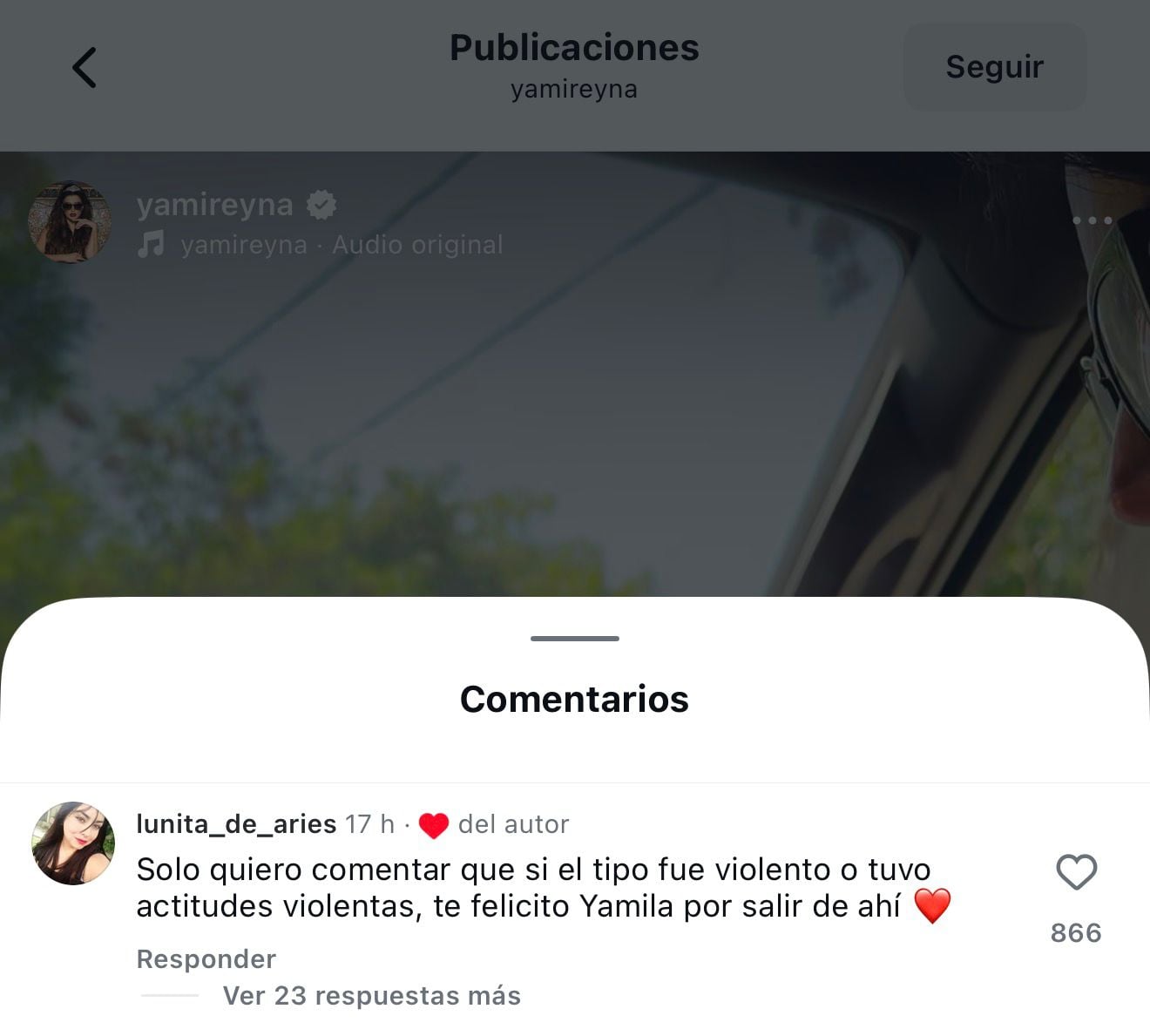 "Solo quiero comentar que si el tipo fue violento o tuvo actitudes violentas, te felicito, Yamila, por salir de ahí", agregó otra usuaria de Instagram.