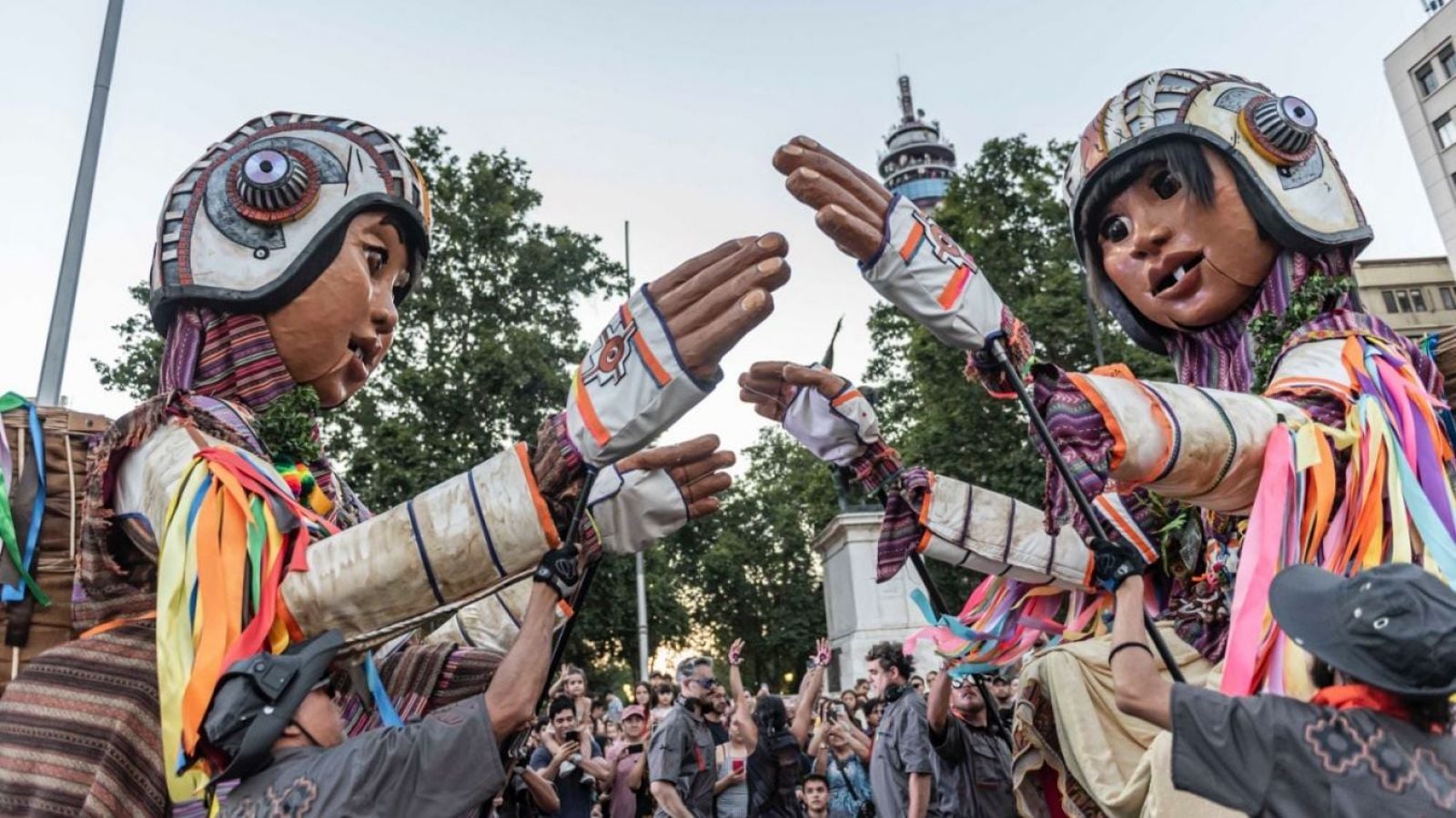 Las calles de Santiago fueron escenario del pasacalle El Gigante y los niños Wara Wara (Chile), que recorrió la ciudad con dirección al Palacio de La Moneda, donde se vivió el esperado despertar del “Gigante de Tarapacá”.