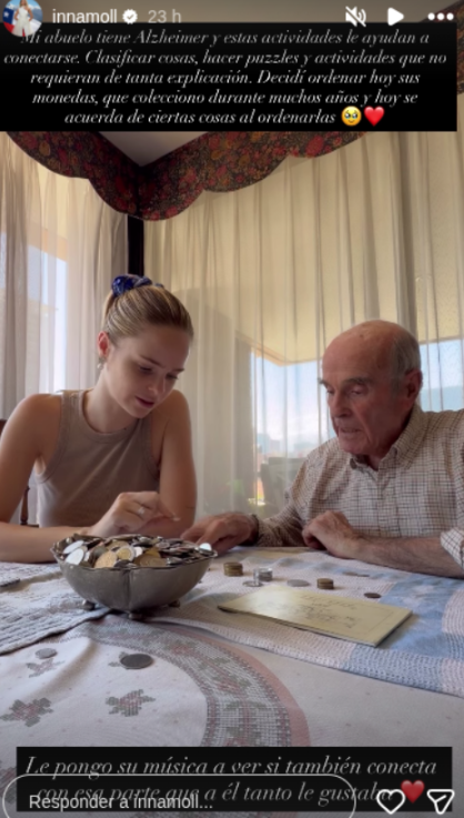 En sus historias de Instagram, la reina de belleza 2025 publicó un registro en donde aparece junto a su abuelo jugando con unas monedas de colección.