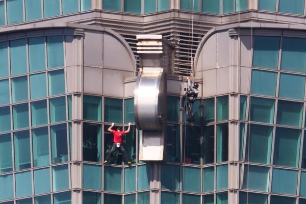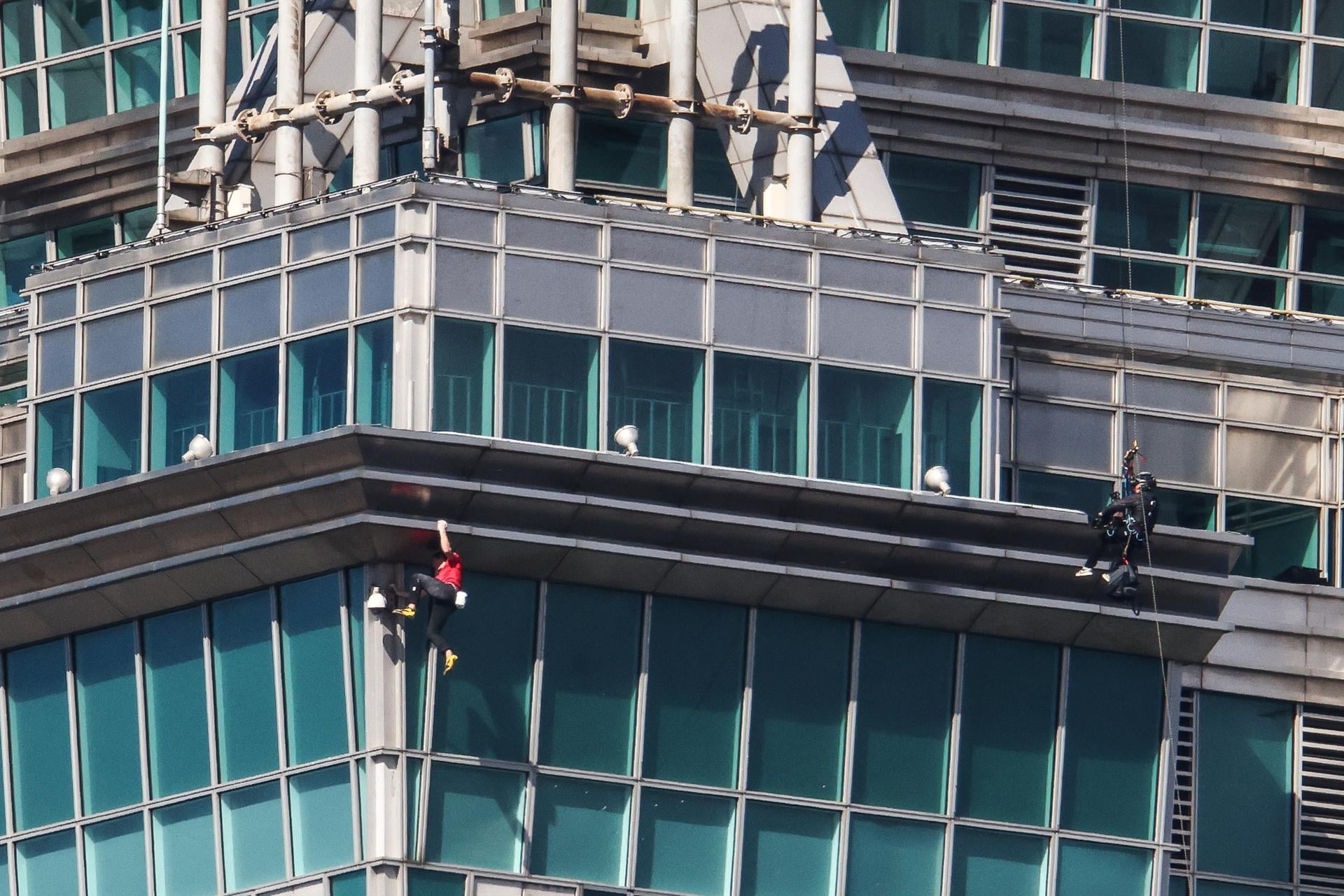 Durante el ascenso, el deportista mantuvo una concentración absoluta, sin verse afectado por los espectadores que seguían su trayectoria desde el interior de los ventanales del edificio. Uno de los momentos de mayor tensión ocurrió en la parte superior de la torre, donde el escalador se sostuvo únicamente con sus piernas para descansar los brazos, provocando la reacción de los asistentes presentes.