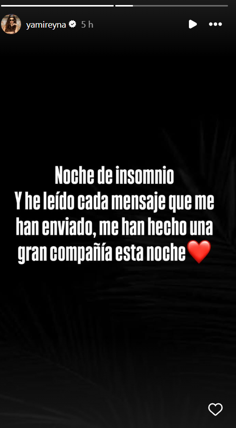 Durante la madrugada, Yamila escribió en las historias de su cuenta de Instagram : “Noche de Insomnio”.