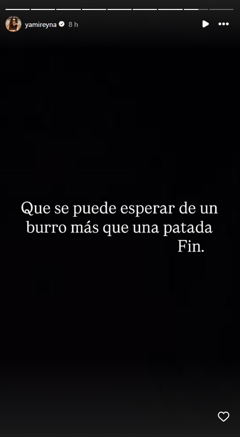 Luego, los mismos dichos los compartió en una historia en su Instagram y escribió “¿Qué se puede esperar de un burro más que una patada? Fin".