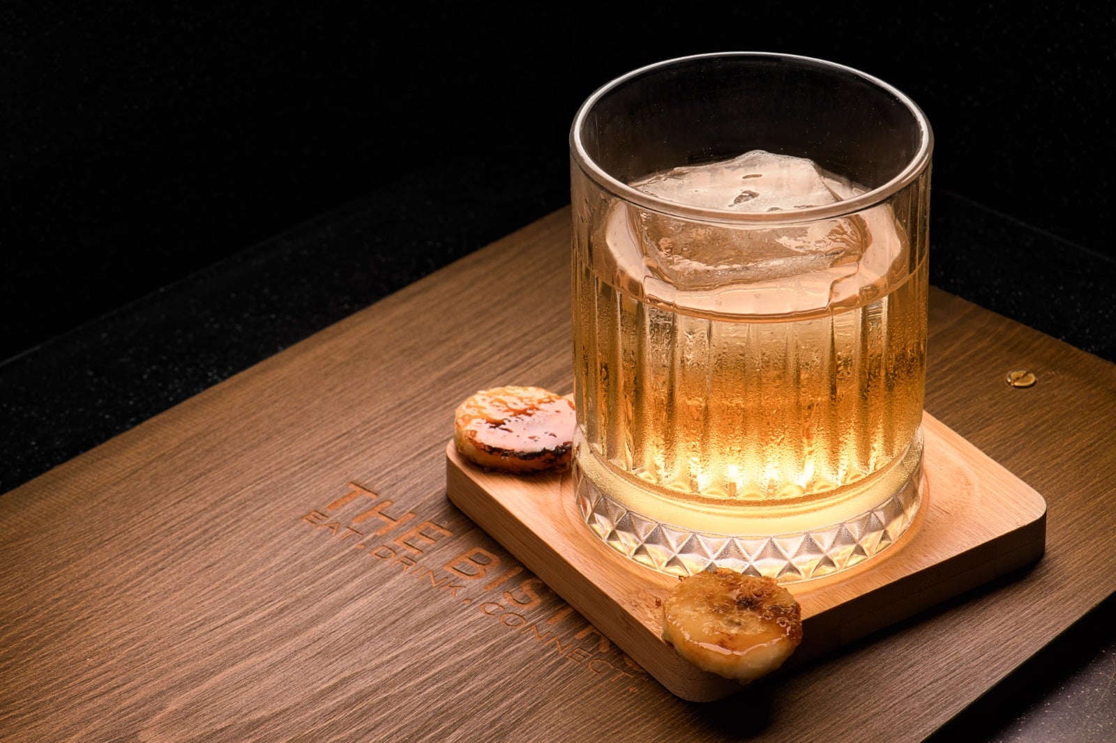 Aura: Una combinación de bourbon con licor de banana y anís, diseñada para un cierre de jornada pausado