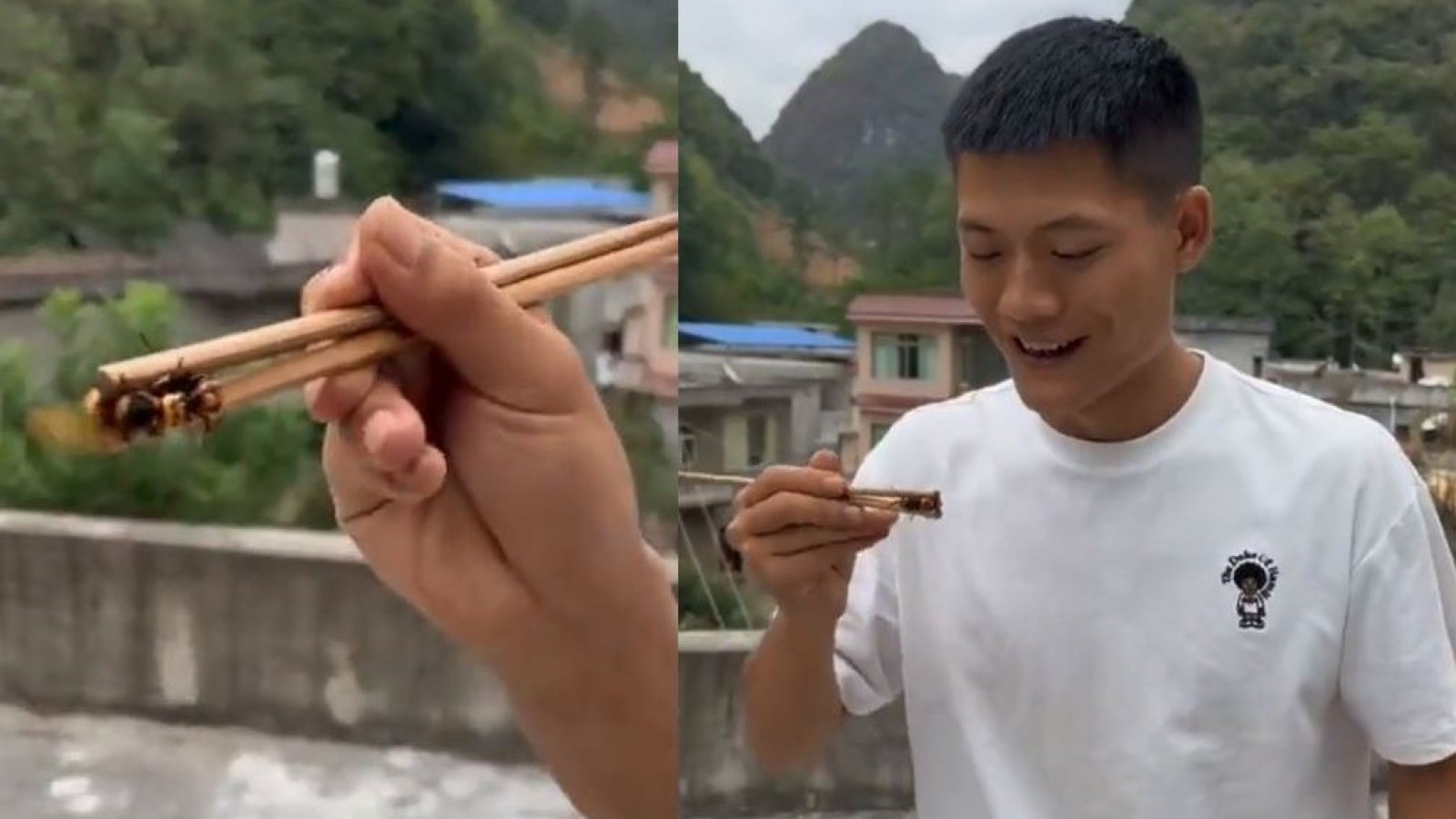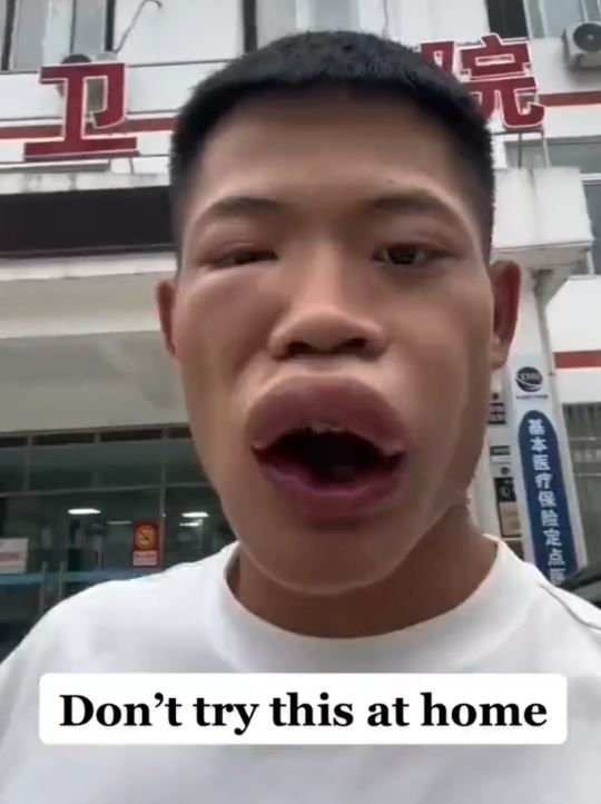Un influencer chino terminó desfigurado luego echarse a la boca una avispa de gran tamaño, que estaba viva, lo que grabó para sus redes sociales.