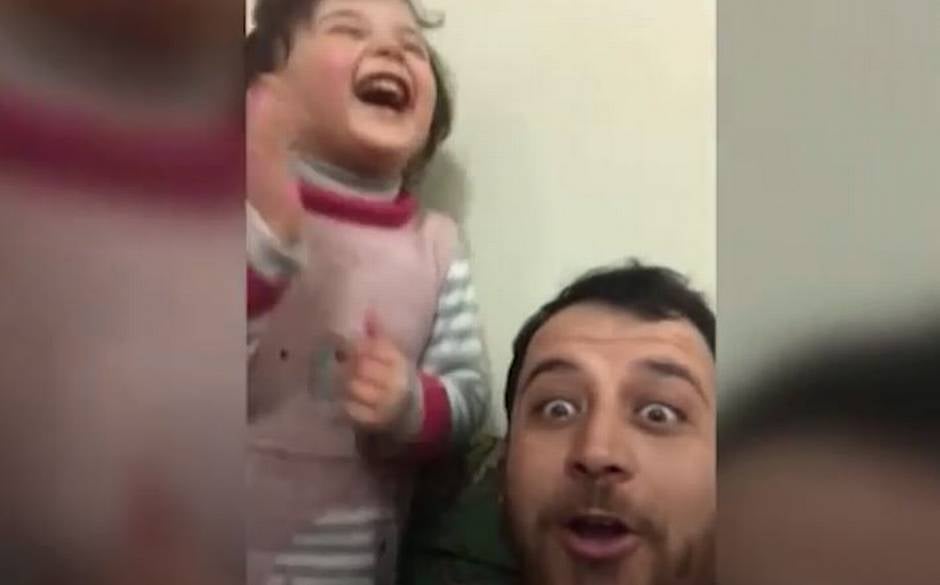 Desesperado por los efectos psicológicos que pueden tener los constantes bombardeos que se registra en Siria, un padre inventó un juego para que su hija de cuatro años no viva con ese constante miedo.