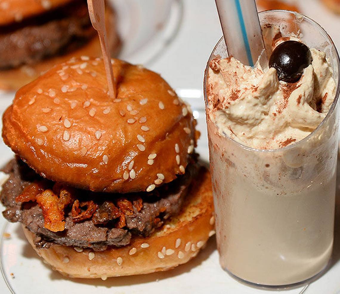 Esta hamburguesa se sirve acompañada con caviar y una copa de champán francés en el McGuire's Irish Pub de Pensacola, en Florida.
